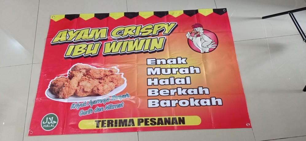 Spanduk banner jualan ayam geprek, fried chicken, ayam goreng bagus.